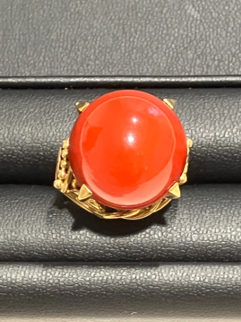 珊瑚ダイヤリングを高価買取|18mm超の赤珊瑚を使用した美品リングをご紹介