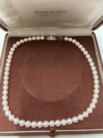 神奈川県藤沢市在住のお客様から、ゴールデンパールネックレスをお買取しました。傷はあるものの、上質な黄金色の輝きが高く評価され、一般相場(3〜6万円)を超える10万円での高価買取を実現。パールはサイズ・色味・照りによって価値が大きく変動するため、専門知識を持つアルトル銀座店の査定が信頼を集めています。