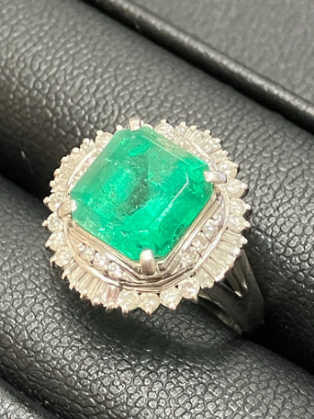 神奈川県大船市のお客様より、3カラットエメラルド ダイヤのプラチナリングをお売りいただきました。クラシックなデザインで需要が高く、鮮やかなエメラルドグリーンが魅力的なお品物でした。他店では内包物が多い点を理由に評価が低かったものの、エメラルドは元来内包物を含みやすい宝石であるため、アルトル銀座店では平均的な基準に照らしつつ色味・サイズ・デザインを総合的に判断し、高価査定につながりました。大粒エメラルドを専門的に見極められる鑑定士が対応し、ご満足いただける買取となりました。