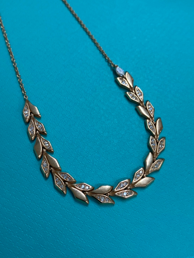ティファニーは1837年にアメリカ・ニューヨークで創業し、世界的に知られる老舗ハイジュエリーブランドとして確固たる地位を築いています。ビクトリアシリーズは繊細な花や葉をモチーフとしたデザインが特徴で、女性らしさと上品さを兼ね備えています。特にピンクゴールド素材を採用したモデルは、柔らかく華やかな印象を与えることから幅広い層に支持されています。今回のようなヴァイン イーストウエスト ネックレスは、横長のラインが個性を演出しながらも上品さを保つことで、日常からフォーマルシーンまで幅広く活用されています。ティファニー買取の市場でも安定した人気を誇り、需要が途絶えることのないシリーズです。