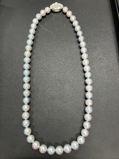 オーロラブルーロゼ パールネックレスの買取について、多くのお問い合わせをいただいています。このシリーズは、真珠科学研究所が認定する高品質の真珠に与えられる特別呼称「オーロラロゼ」の中でも、さらに珍しいブルー系統の色合いを持つ珠で構成されています。照りの美しさに加え、天然でこのような発色を見せる個体は極めて少なく、真珠市場でも特に注目を集めています。約8.0~8.5mmという大粒サイズは、フォーマルな場面での装いを一層引き立てる存在感があり、資産価値としても安定した評価を得られる特徴があります。そのため、希少性と需要の高さが揃ったオーロラブルーロゼ パールネックレスは、中古市場でも高価買取につながりやすいお品物です。