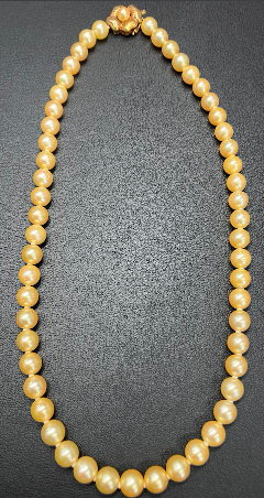 ゴールデンパールネックレスの買取について、多くのお客様からお問い合わせをいただいています。ゴールデンパールは南洋真珠の一種で、特にフィリピンやミャンマーで採れるパールが有名です。真珠の中でも希少な黄金色を持ち、上品でラグジュアリーな印象を与えることから近年人気が高まっています。今回のお品は7㎜台の珠を均等に連ねたネックレスで、優しい輝きを持つゴールドトーンが特徴でした。一般的にパールの価値は「サイズ・色・照り・キズ・形」の5要素で決まります。ゴールデン系は特に色味の美しさと照りの強さが査定の重要ポイントであり、光沢に深みのある珠は高く評価されます。また、留具がシルバー製であっても、全体のデザインバランスや珠のグレードが優れていれば、十分な高価査定が可能です。アルトル銀座店では、豊富な真珠取扱い実績をもとに、一本一本のネックレスの特徴を正確に見極め、適正価格でお買取しています。ゴールデンパールはファッション性と希少性を兼ね備えた宝石であり、今後も注目が集まるアイテムのひとつです。