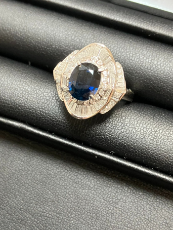 •2カラットの大粒サファイアが主石であり、濃く深みのあるブルーが高評価の決め手となりました。