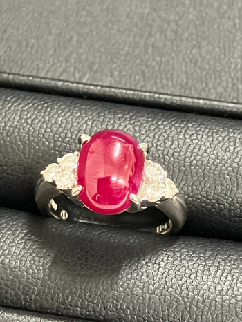 •カボションカットは内包物が多い石に用いられる技法ですが、今回のルビーは色の深さが際立ち、その魅力を最大限に引き立てていた点を高く評価しました。