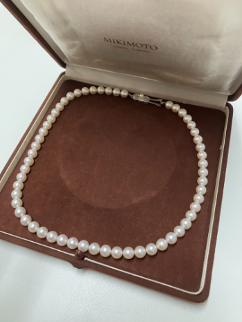 ミキモト パールネックレスの買取については、「古いと値段がつかないのでは」「状態が万全でないと難しいのでは」といったご相談を多くいただきます。しかし実際には、パールそのものの品質やブランドの評価によって、十分に価値が認められるケースが少なくありません。ミキモトのパールネックレスは、真珠の選定から仕上げまで徹底した基準で作られており、年月が経過しても美しさが失われにくい点が特長です。今回のお品物も、糸のゆるみこそありましたが、パールの輝きや存在感は健在で、ミキモトらしい上品さがしっかりと感じられました。フォーマルな場面はもちろん、世代を問わず支持され続けているネックレスであることから、中古市場でも安定した需要があり、買取価格にも反映されています。
